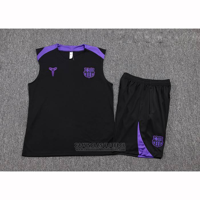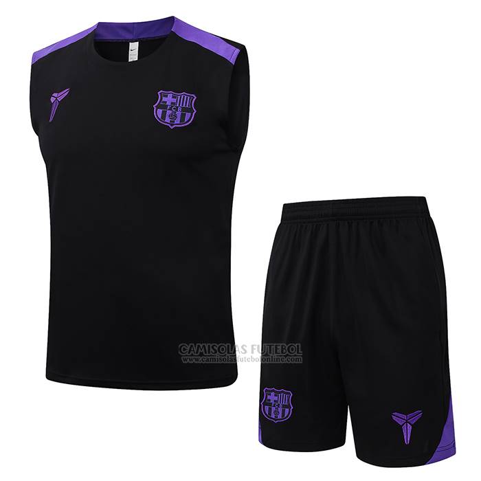 Fato de Treino Barcelona Sin Mangas 2025-2026 Preto Rosa