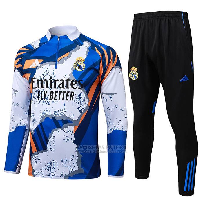 Sueter de Treinamento Real Madrid Crianca 2025-2026 Azul Branco